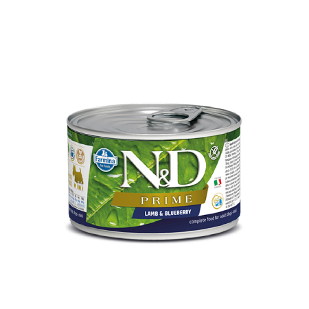 N&D Prime Dog Lamb & Blueberry Mini Recipe is formulated to meet the nutritional levels established by the AAFCO Dog Food Nutrient Profiles for maintenance. 100% Satisfaction Guarantee.